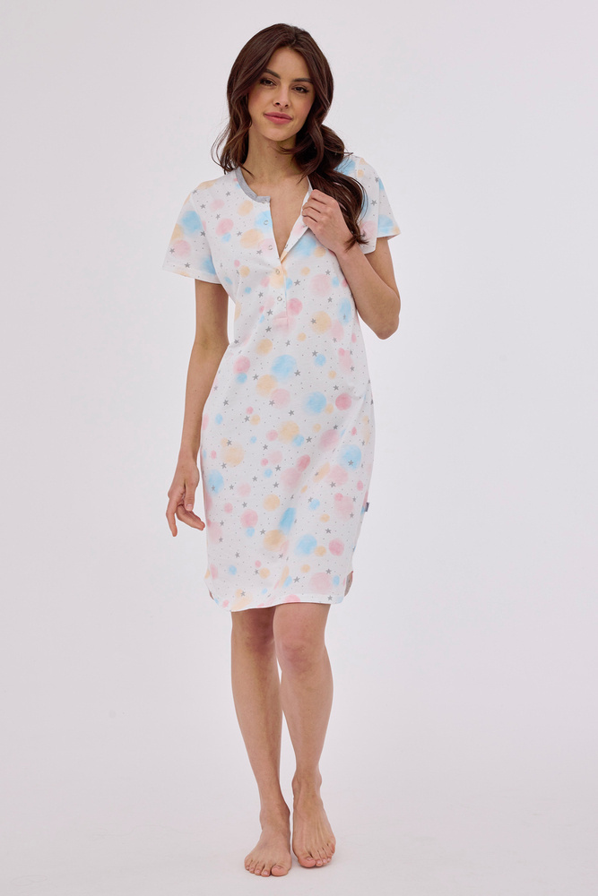 Koszula damska przeznaczona dla mam karmiących z krótkim rękawem  Uszyta z wysokiej jakości miłej w dotyku bawełny.