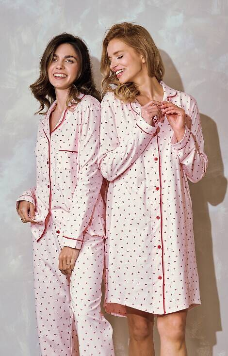 3229 Saanavi Koszula nocna rozpinana Taro- różowa