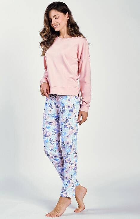 Piżama damska uszyta z wysokiej jakości bawełny interlock.  Koszulka z długim rękawem , dekolt półokrągły.
