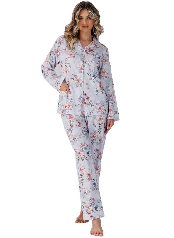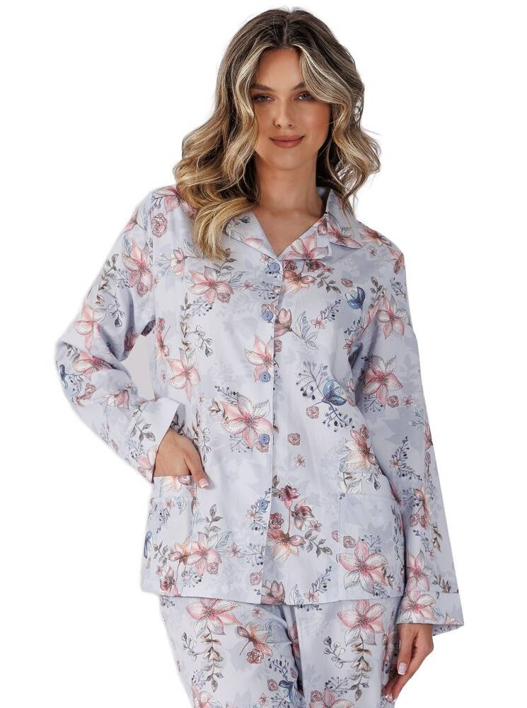 Piżama damska z długim rękawem wykonana z wysokiej jakości bawełny. Koszulka zapinana na guziki. Do kompletu długie spodnie z wygodnymi kieszeniami