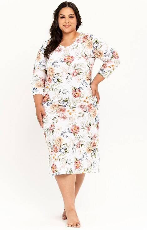 3263 Louisa Koszula nocna Taro-biały kwiaty