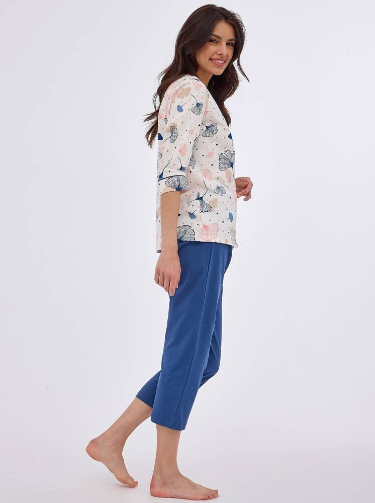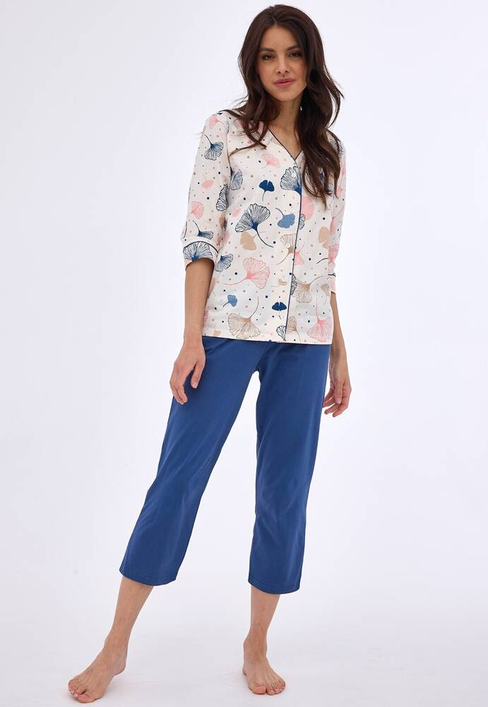 Wygodna piżama damska zapinana na guziki wykonana z wysokiej jakości wyjątkowo miłej i miękkiej bawełny. Dekolt w kształcie litery "V"