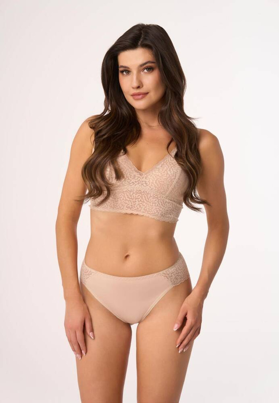 Figi damskie uszyte z bawełny najwyższej jakości. Prosty, ponadczasowy wzór ozdobiony koronką.