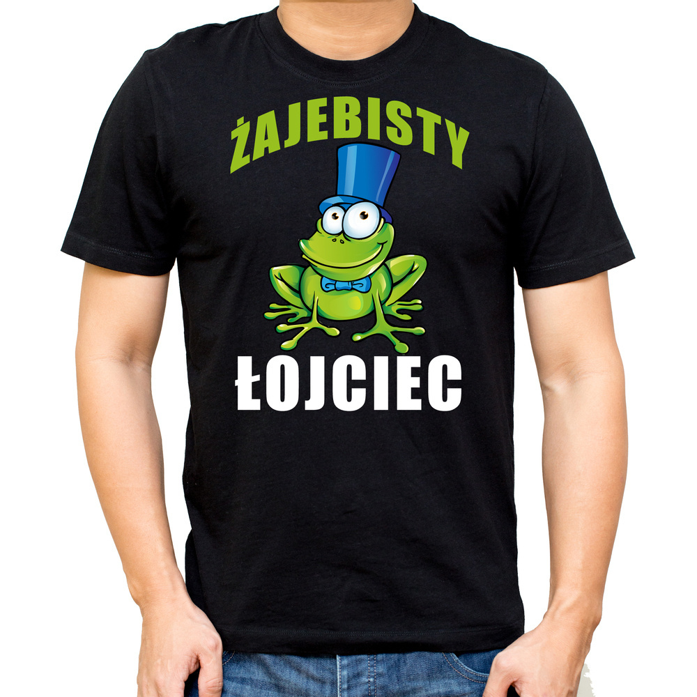 SKU M26 "Żajebisty łojciec" Koszulka męska z dinozaurem Moocha czarny