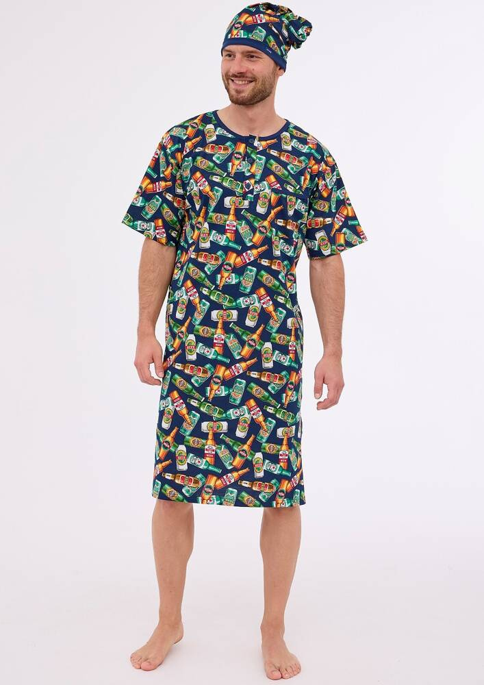 Koszula nocna męska z krótkim rękawem. Uszyta z wysokiej jakości bawełny w oryginalny wzór.