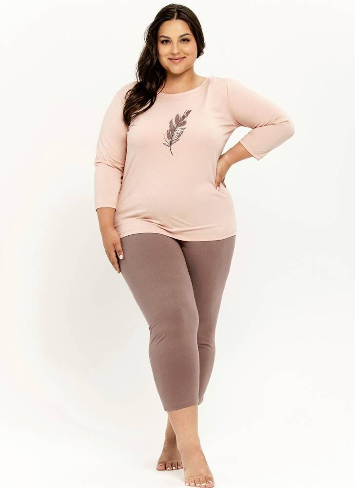 Piżama damska uszyta z wysokiej jakości bawełny. Koszulka z rękawem 3/4 , dekolt półokrągły z delikatnym nadrukiem.