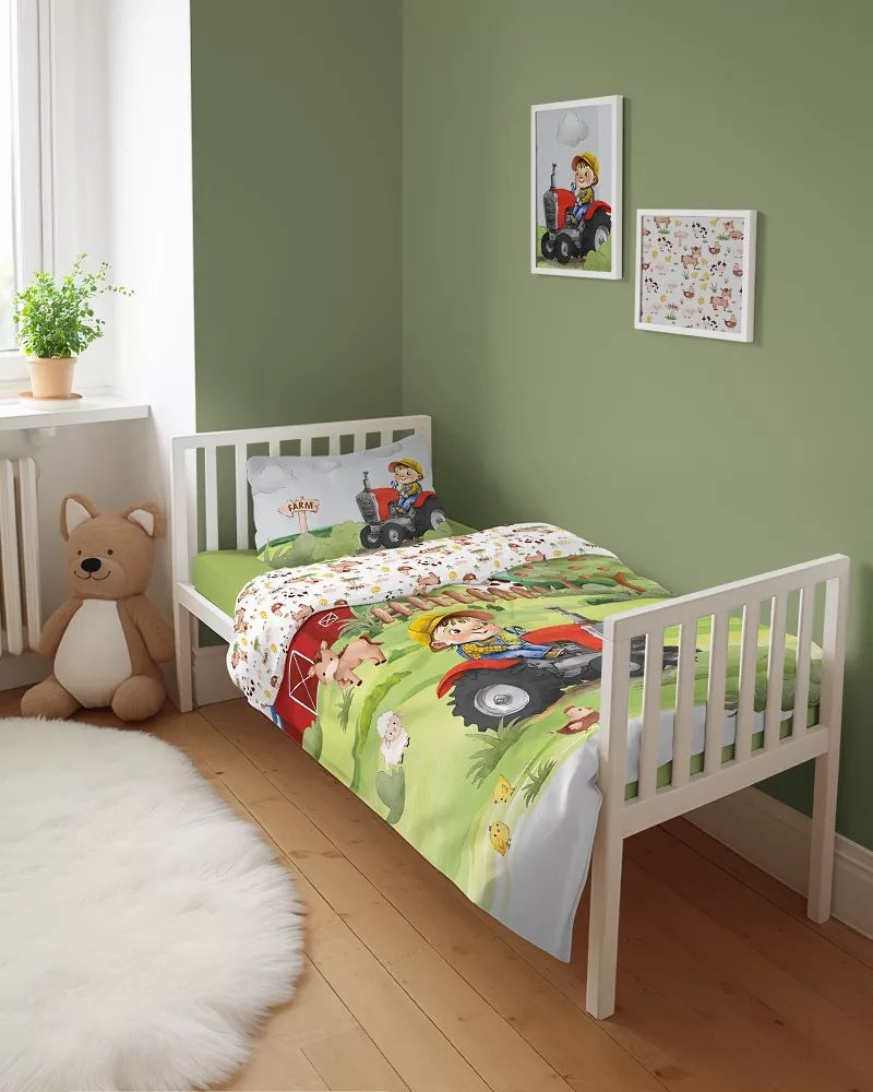 Estetyczny komplet utrzymany w przyjemnej dla dziecka, spokojnej tonacji barw. Kolorowa, bardzo starannie i dokładnie wykończona. Przyjemna w dotyku, nie podrażnia skóry, wprawia w przyjemny nastrój przed snem i po obudzeniu. Dwustronna poszwa na kołdrę dodatkowo urozmaici wygląd sypialni Twojej pociechy.