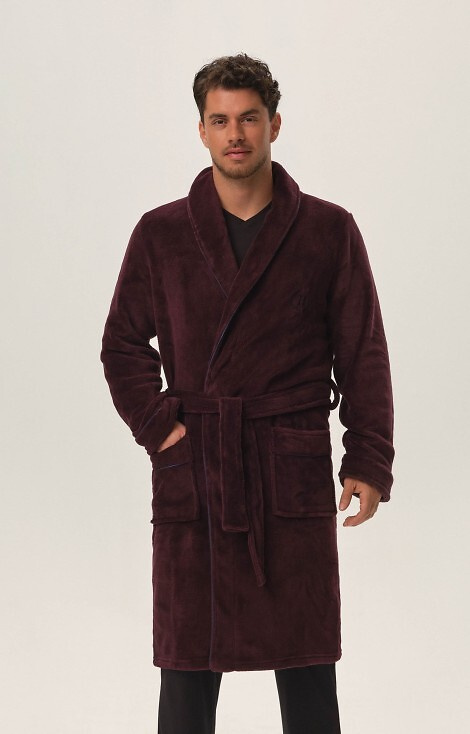 Klasyczny szlafrok męski z szalowym kołnierzem, wykonany z wyjątkowo przyjemnej dzianiny. Obszyty lamówką