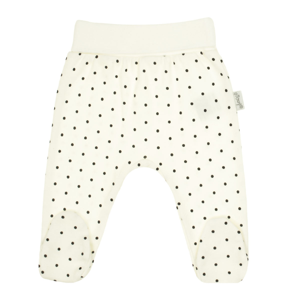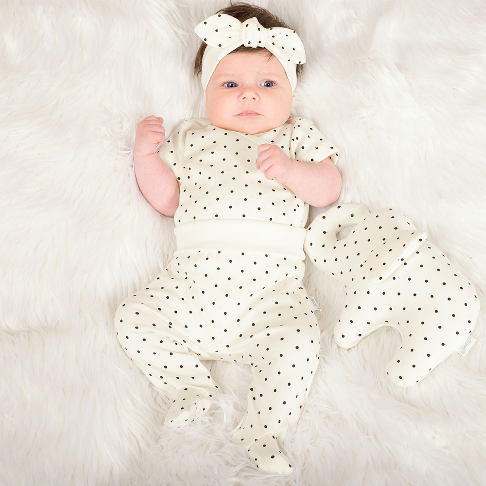 Зручні та м'які напівсонці, пошиті зі 100% повітряної бавовни кремового кольору в чорний горошок. Висока якість виробу підтверджена сертифікатом Oeko-Tex Standard 100. Текстиль, гідний довіри. Напівсонці мають вільний крій та трохи занижену талію для розміщення підгузка, мають широкий пояс, що не тисне, що забезпечує повний комфорт для дитини.