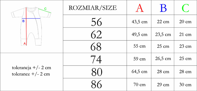 Dostępny w rozmiarach 56-86.