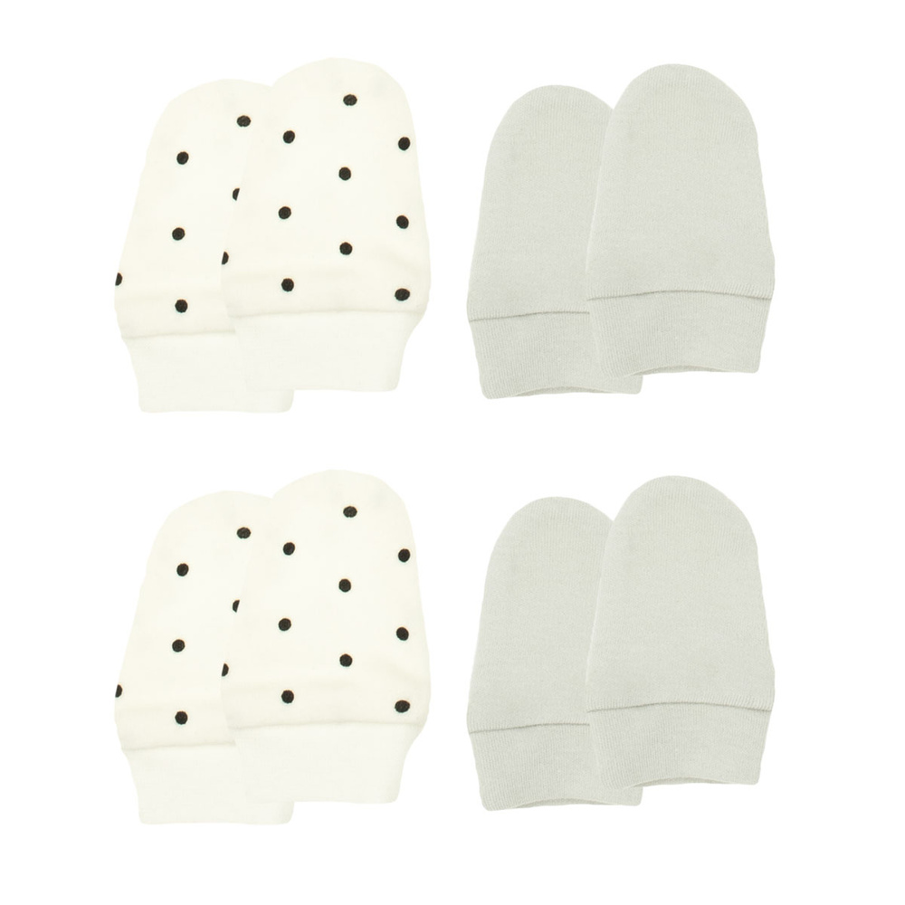 Zapytaj o produktRękawiczki, niedrapki 4 - pack uszyte ze 100% bawełny, posiadającej certyfikat Oeko-Tex Standard 100 Tekstylia godne zaufania. Występują w dwóch wersjach kolorystycznych. Pierwsze w kolorze zielonym, drugie białe w wzór indiański. Modele posiadają bezuciskowy ściągacz. Rękawiczki zabezpieczają noworodka przed zadrapaniem się.