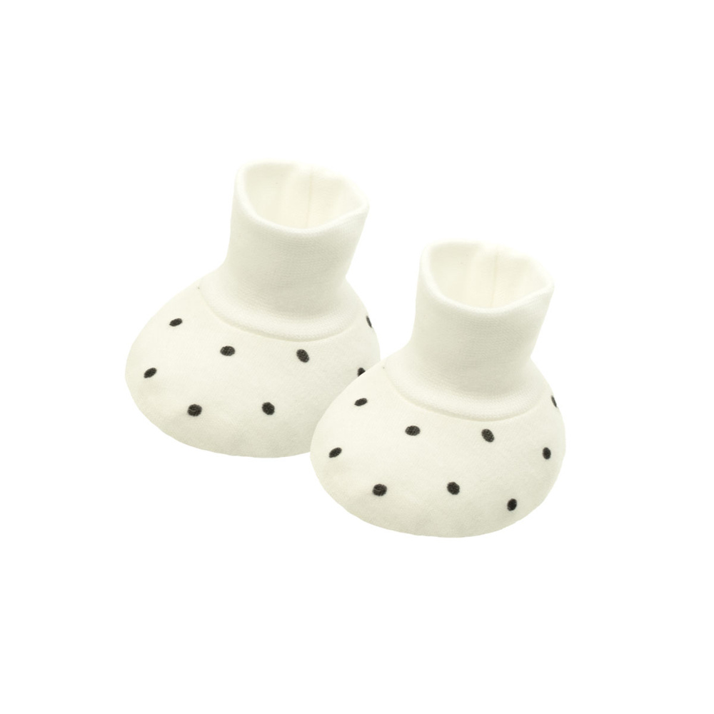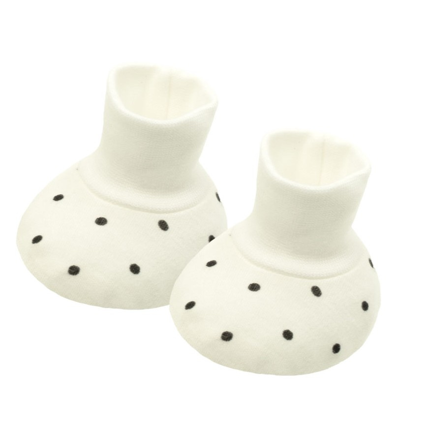 Buciki z kolekcji Lizy uszyte ze 100% bawełny w kolorze kremowym. Materiał całkowicie bezpieczny dla skóry dziecka. Butki zostały wykończone bezuciskowym ściągaczem, dzięki czemu nie będą się zsuwać. Idealne od pierwszych chwil życia.