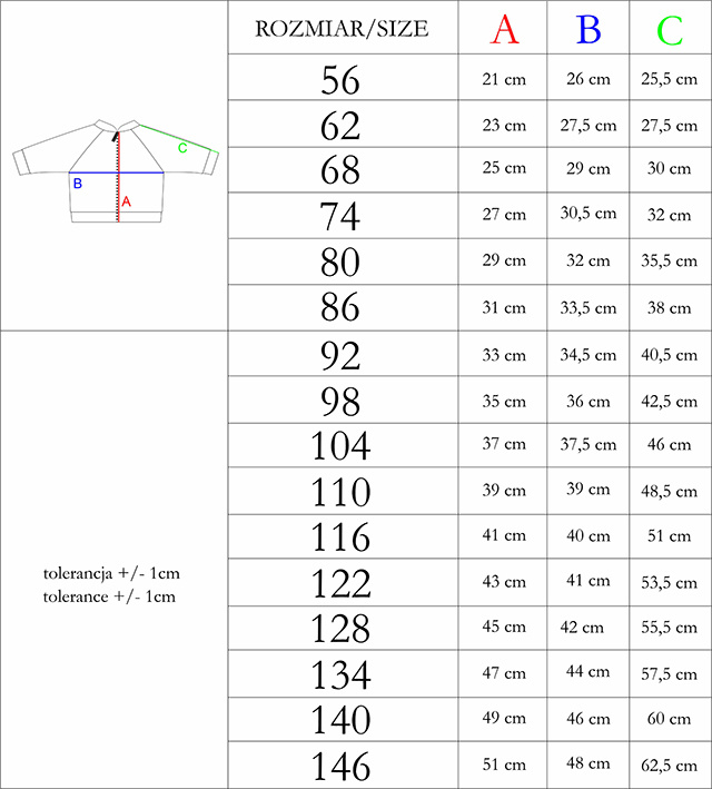 | Rozmiar | Obwód klatki piersiowej | Obwód pasa |