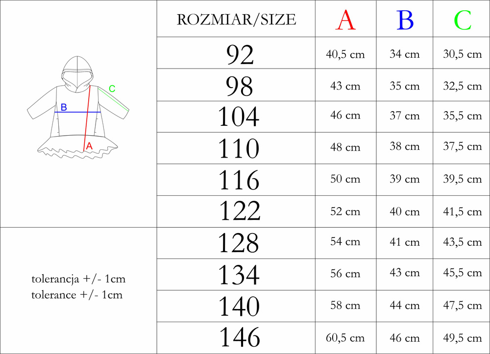 | Rozmiar | Obwód klatki piersiowej | Obwód pasa |