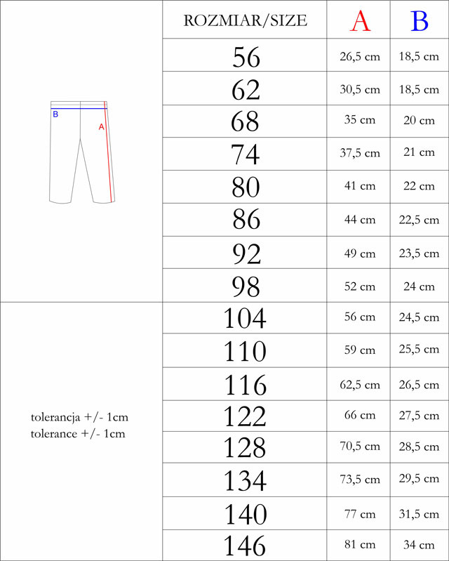 | Rozmiar | Obwód klatki piersiowej | Obwód pasa |