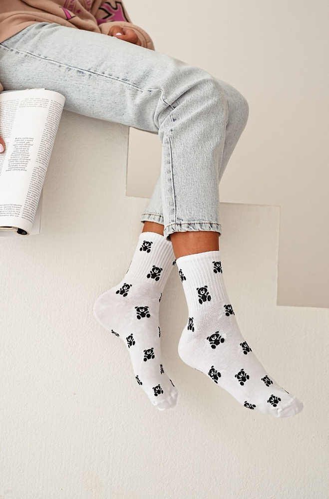 0200-118 Małe Misie Skarpety damskie Milena - biały