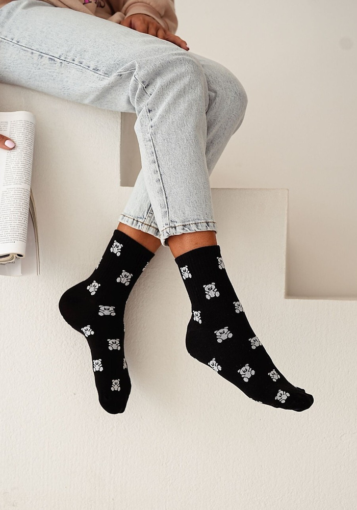 Bawełniane skarpety damskie, ozdobione wzorem w małe misie.