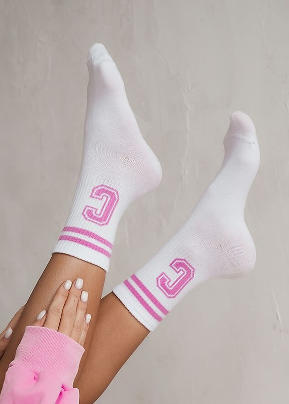 0200 Wzór Litera C Skarpety damskie Milena - biały-różowy