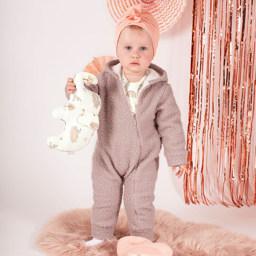 Zapytaj o produktPajac ocieplany wykonany z zewnątrz z materiału typu bukla. Podszyty został bawełnianą podszewką co sprawia, że ubranko idealnie nadaje się na chłodne dni. Całość zdobi kaptur. Ubranko posiada ściągacze na rękawach. Pajac zapinany jest na wygodny zamek - ułatwi to ubieranie. Materiał jest całkowicie bezpieczny dla skóry dziecka.