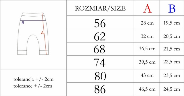 | Rozmiar | Obwód klatki piersiowej | Obwód pasa |