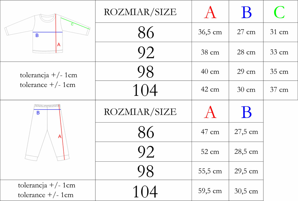 | Rozmiar | Obwód klatki piersiowej | Obwód pasa |