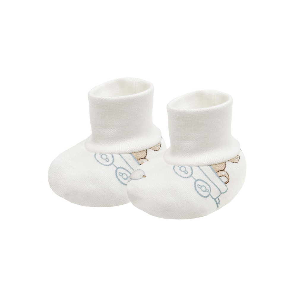 Zapytaj o produktBuciki z kolekcji Teddy uszyte z kremowej bawełny w misie z napisem „little baby boy”. Materiał całkowicie bezpieczny dla skóry dziecka. Butki zostały wykończone bezuciskowym ściągaczem w kolorze kremowym, dzięki czemu nie będą się zsuwać. Idealne od pierwszych chwil życia.