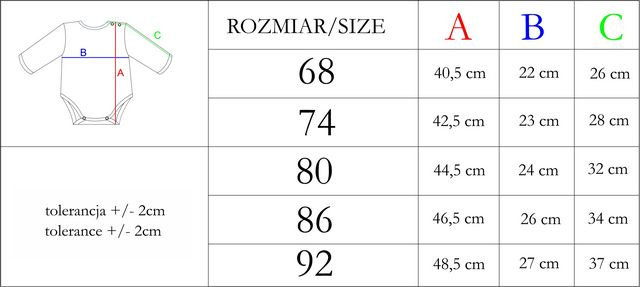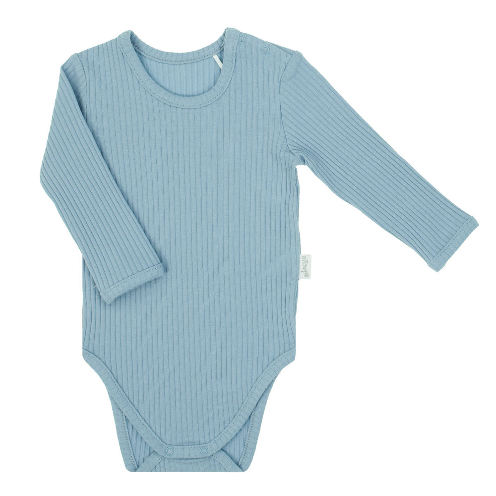 Zapytaj o produktBody z długim rękawem w kolorze niebieskim, uszyte z prążkowanej bawełny z niewielką ilością elastanu. Materiał posiada certyfikat Oeko-Tex Standard 100 Tekstylia godne zaufania. Produkt jest zapinany na ramieniu oraz w kroku na bezniklowe napy. Klasyczny fason znakomicie uzupełni niejedną stylizację.