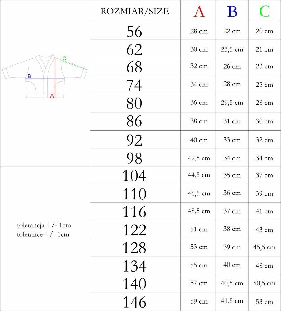 | Rozmiar | Obwód klatki piersiowej | Obwód pasa |