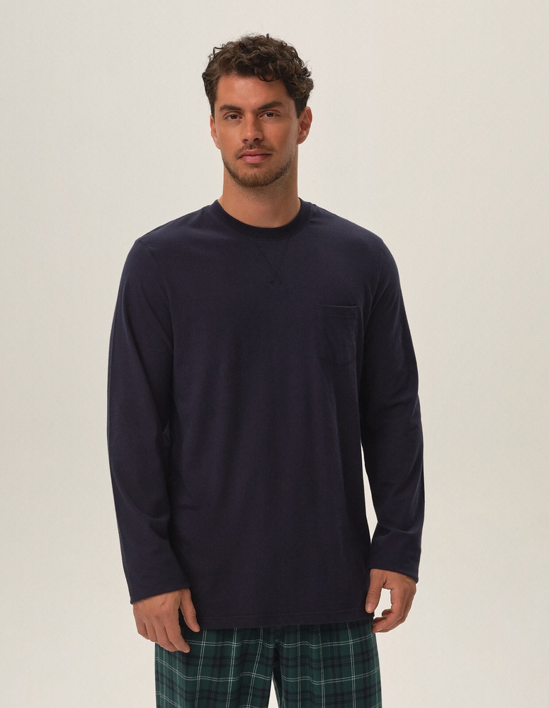 Piżama męska wykonana z wysokiej jakości bawełny. Koszulka z długim rękawem i nadrukiem.