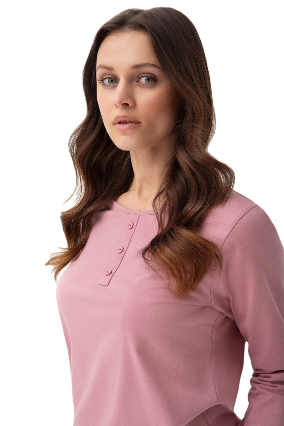 Piżama damska wykonana z wysokiej jakości bawełny . Bluzka z długim rękawem .