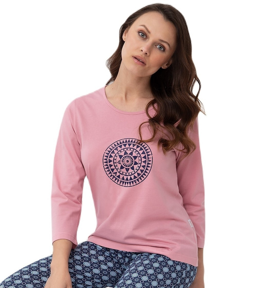 Piżama damska wykonana z wysokiej jakości bawełny . Bluzka z rękawem 3/4 .