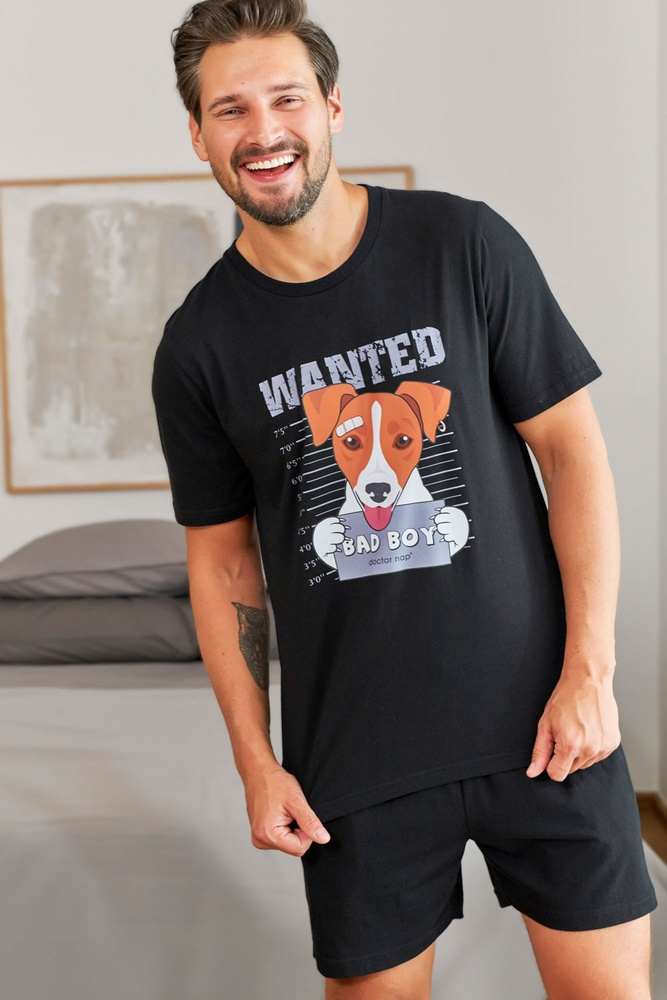 Piżama męska wykonana z wysokiej jakości miłej i miękkiej bawełny. Model o klasycznym kroju. Koszulka z krótkim rękawem, dekolt półokrągły i zabawnym nadrukiem. Spodnie krótkie, jednolite. Spodoba się najbardziej wymagającym mężczyzną.