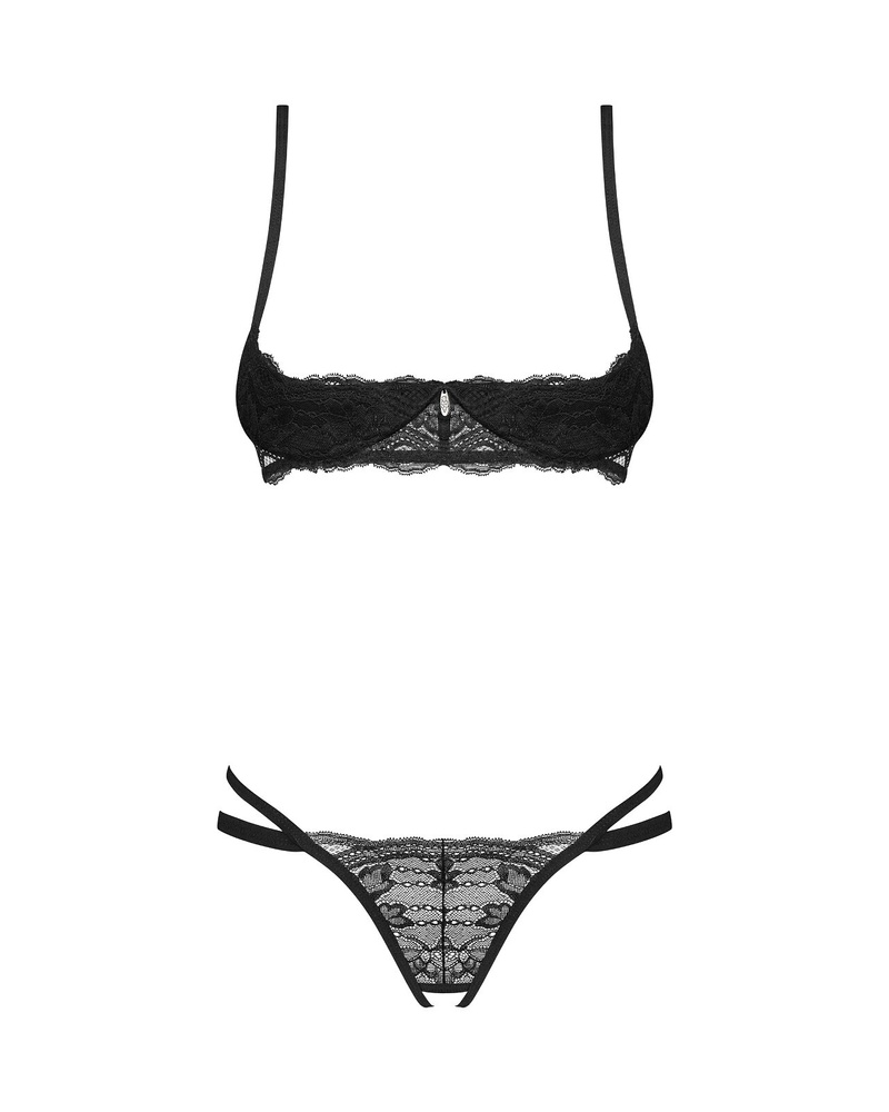 Nutris Komplet Biustonosz i stringi Obsessive - czarny