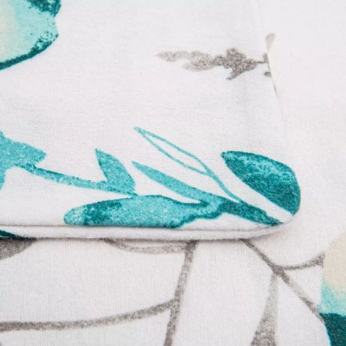 31504/1 Pościel flanelowa kwiaty Darymex biały/turkusowy