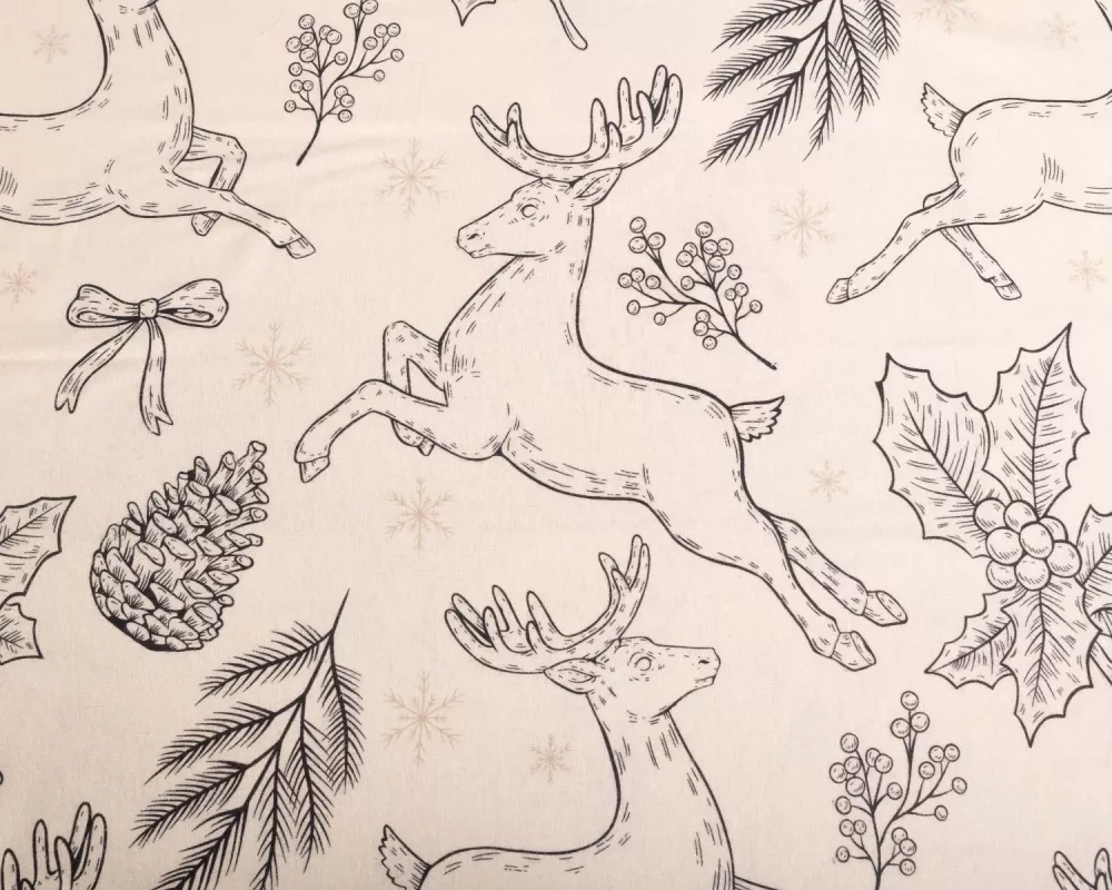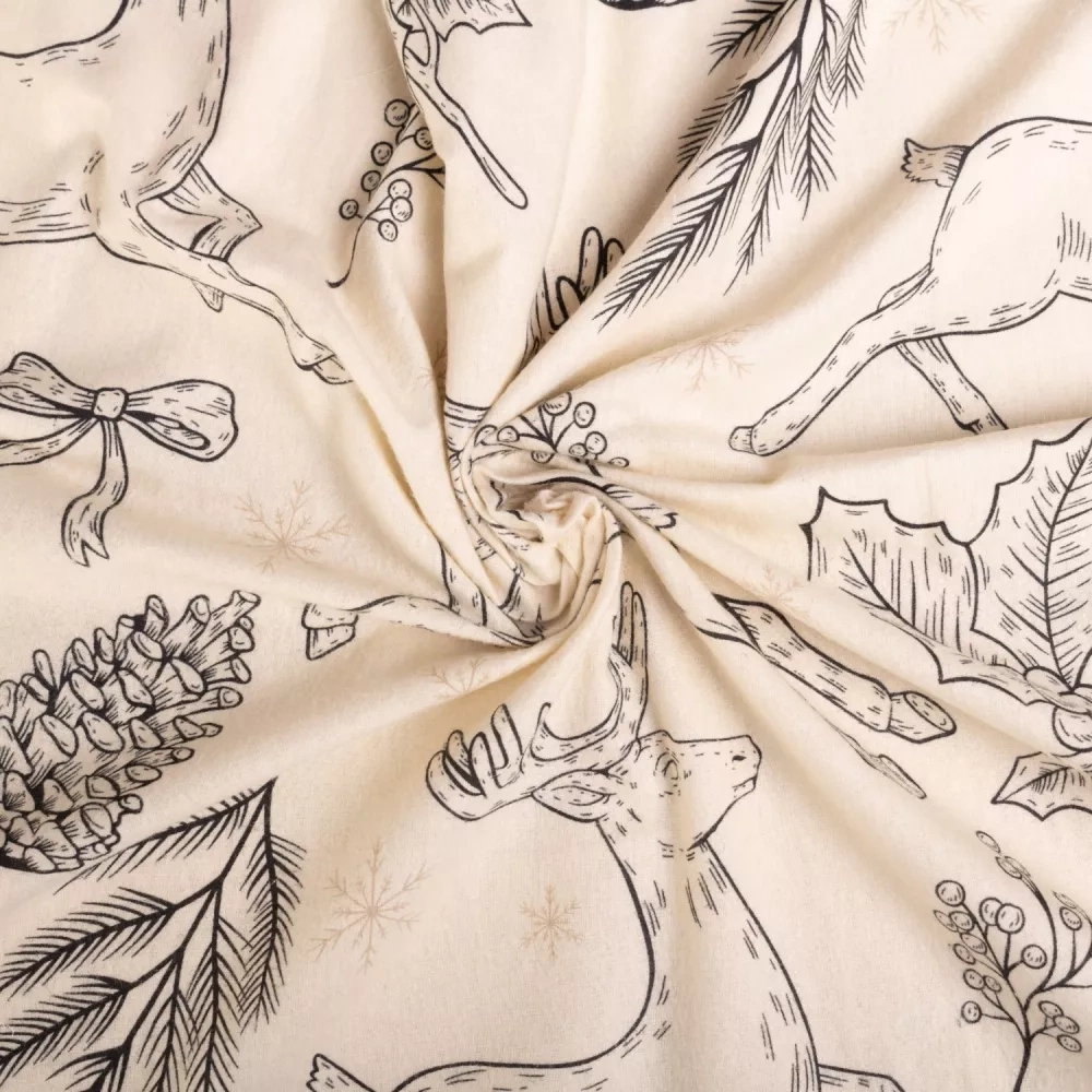 F-86 Pościel flanelowa świąteczna renifery Matex kremowy