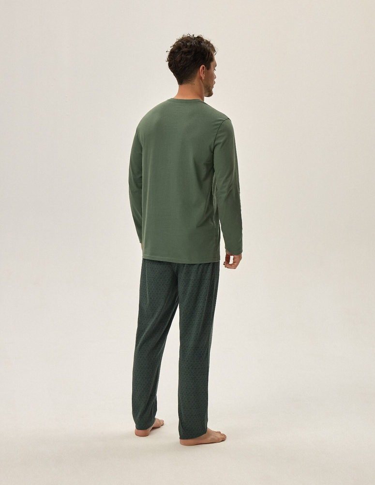 Piżama męska wykonana z wysokiej jakości bawełny. Koszulka z długim rękawem i nadrukiem.