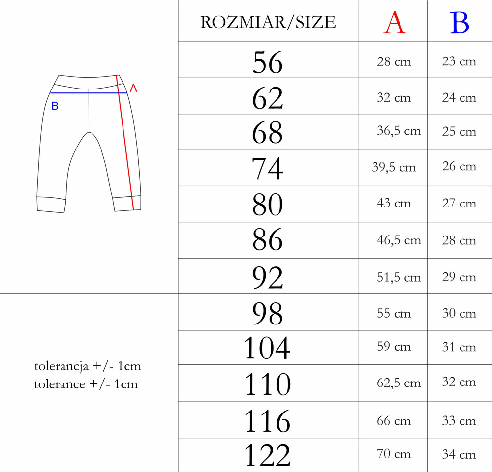| Rozmiar | Obwód klatki piersiowej | Obwód pasa |