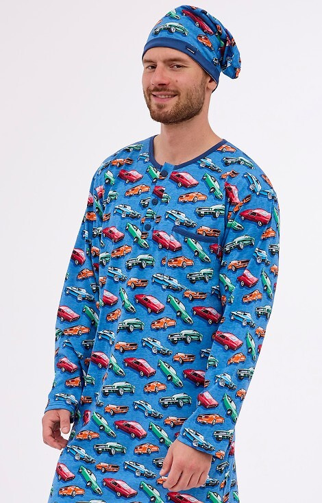 Koszula nocna męska z długim rękawem. Uszyta z wysokiej jakości bawełny w oryginalny wzór.