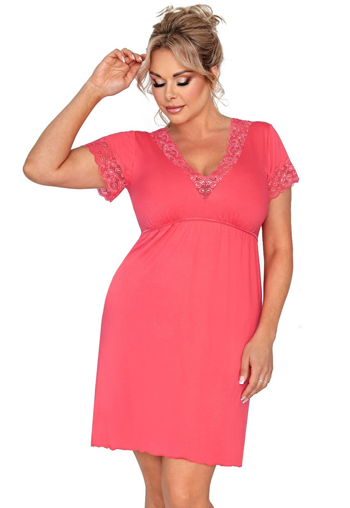 - dekolt w kształcie litery "V" z koronki o kwiatowym motywie