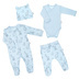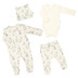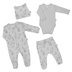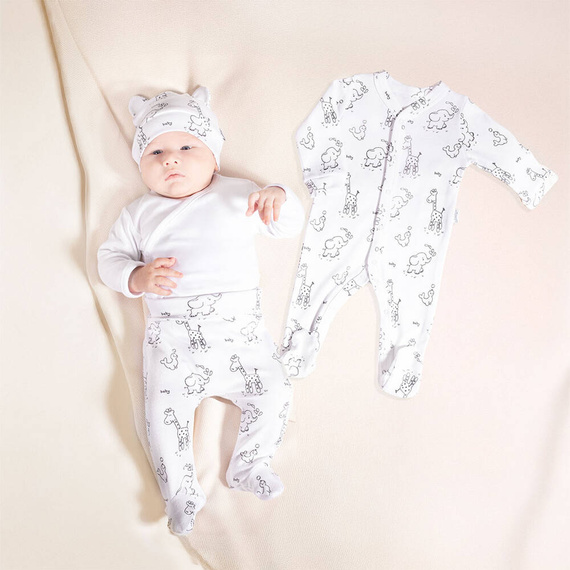 Zapytaj o produktKomplet niemowlęcy, który składa się z półśpioszków, pajacyka, czapeczki i body. Body i pajacyk zapinane na napki. Zapakowana w pudełko. Całość uszyta z mięciutkiej 100% bawełny, ozdobiona nadrukiem miśków.