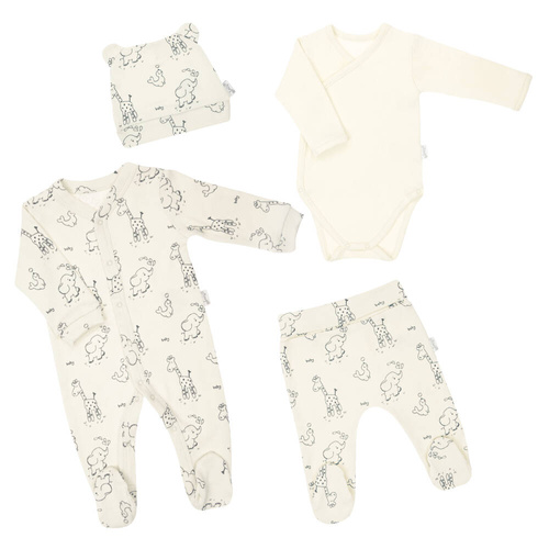 4800 02 Komplet wyprawkowy 4-częściowy nadruk "Animals" Nicol - ecru