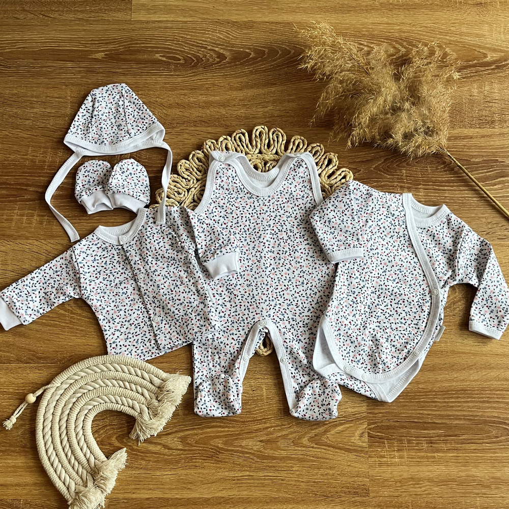 Zapytaj o produktWygodna 5 częściowa wyprawka niemowlęca to podstawowy element garderoby każdego maluszka. Produkty wykonane są z dzianiny 100% bawełna z certyfikatem Bezpieczne dla Dziecka oraz Tekstylia Godne Zaufania. W jej skład wchodzi: śpioch, kaftan, body, czapeczka i rękawiczki niedrapki.