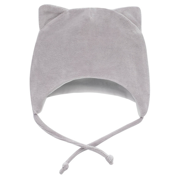 Mięciutka czapka welurowa uszyta z bawełny z ozdobnymi uszkami.