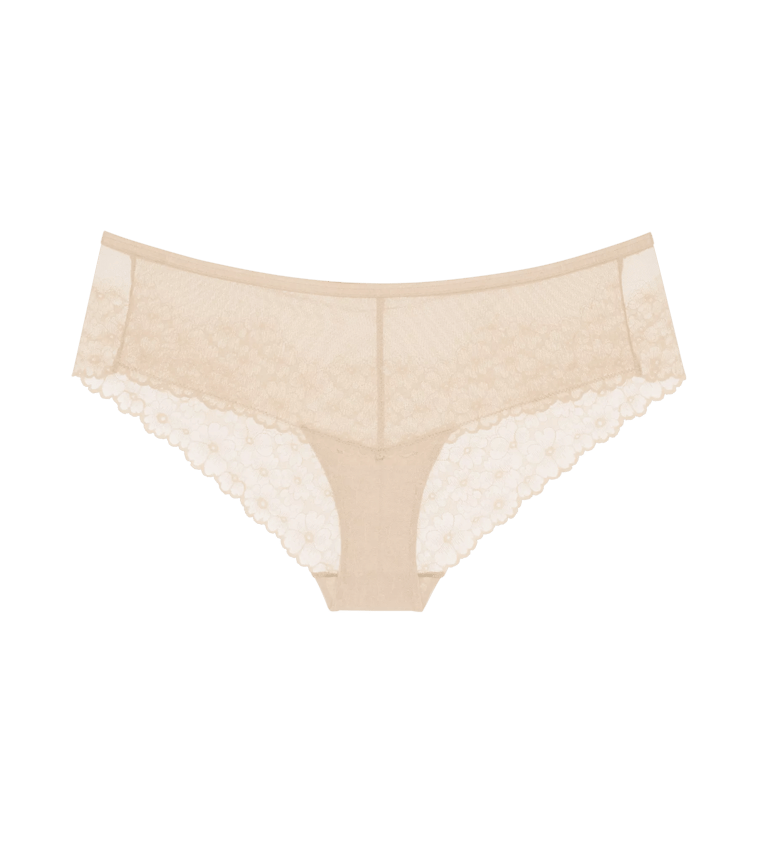 Majtki typu hipster z miękkiej i elastycznej koronki żakardowej.