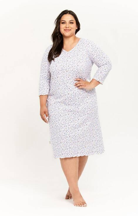 Koszula damska z rękawem 7/8 . Całość uszyta z wysokiej jakości bawełny. Dekolt w szpic. Długość za kolana .