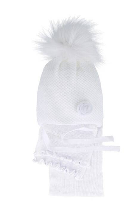 Czapka dla dziewczynki, do kompletu szalik. Czapka zdobiona włochatym pomponem. Idealna na chłodne dni