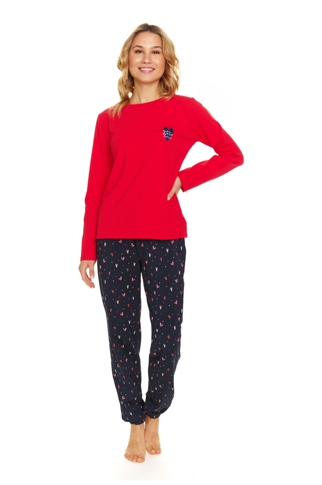 Dwuczęściowa piżamka firmy Doctor Nap wykonana z wysokogatunkowej bawełny. Idealna na dobry sen i na wspaniały początek dnia przy pierwszej porannej kawie. Luźna bluza z długim rękawem, nie krępuje ruchów i ładnie podkreśla sylwetkę. Dekolt okrągły, bluzka jednolita. Spodnie długie, wzorzyste w pasie wykończone gumką. Przyjemna w dotyku piżama, utrzymana jest w ciekawej kolorystyce.