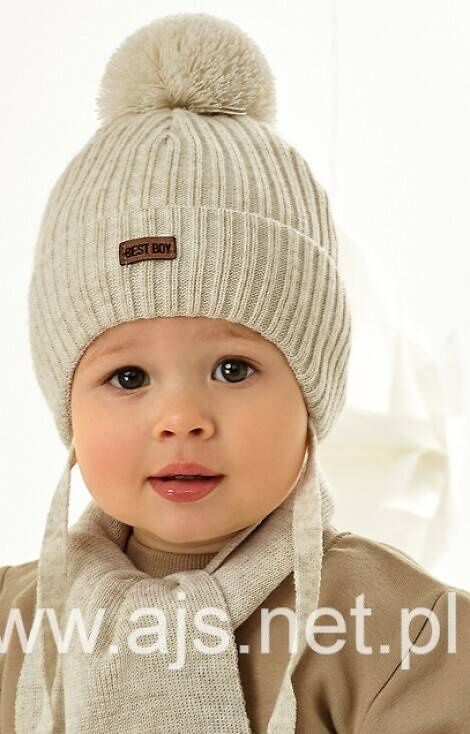 48-316 Komplet czapka+szalik AJS beżowy