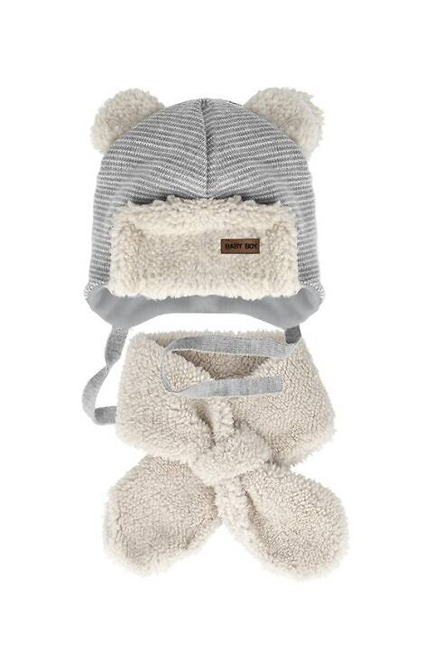 Skład: : czapka 90% akryl, 10% wełna, podszewka 95% bawełna, 5% elastan; szalik 100 % poliester
