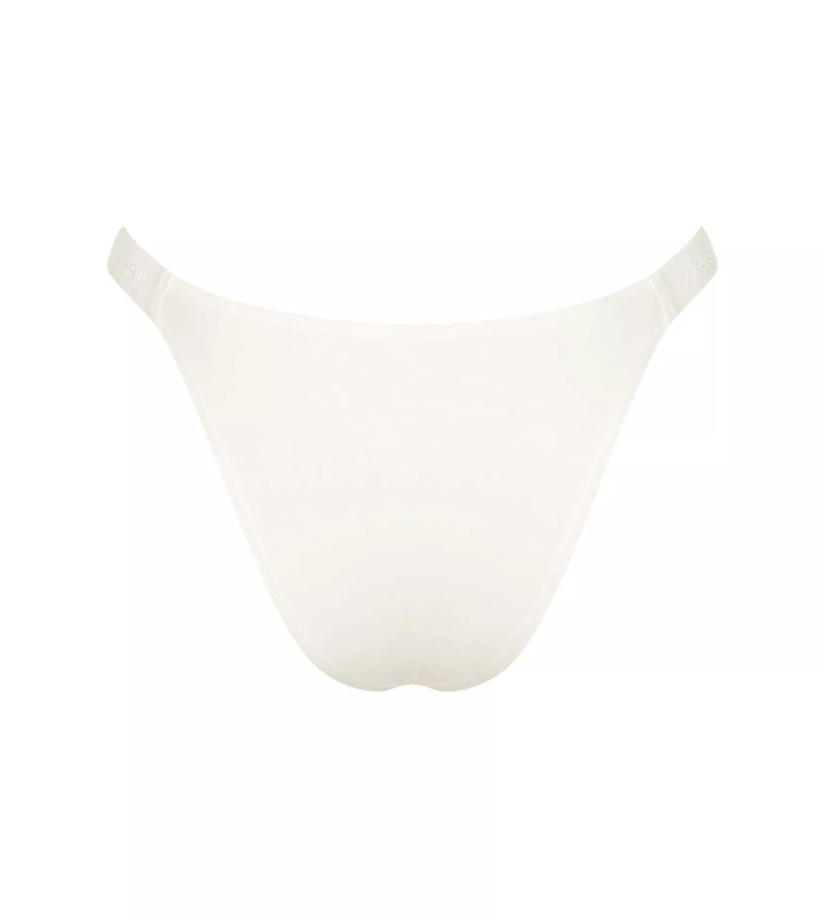 Figi damskie typu tanga. Wykonane z miękkiej bawełny organicznej. Pasek miękki i elastyczny. Na pasku widnieje logo Sloggi.